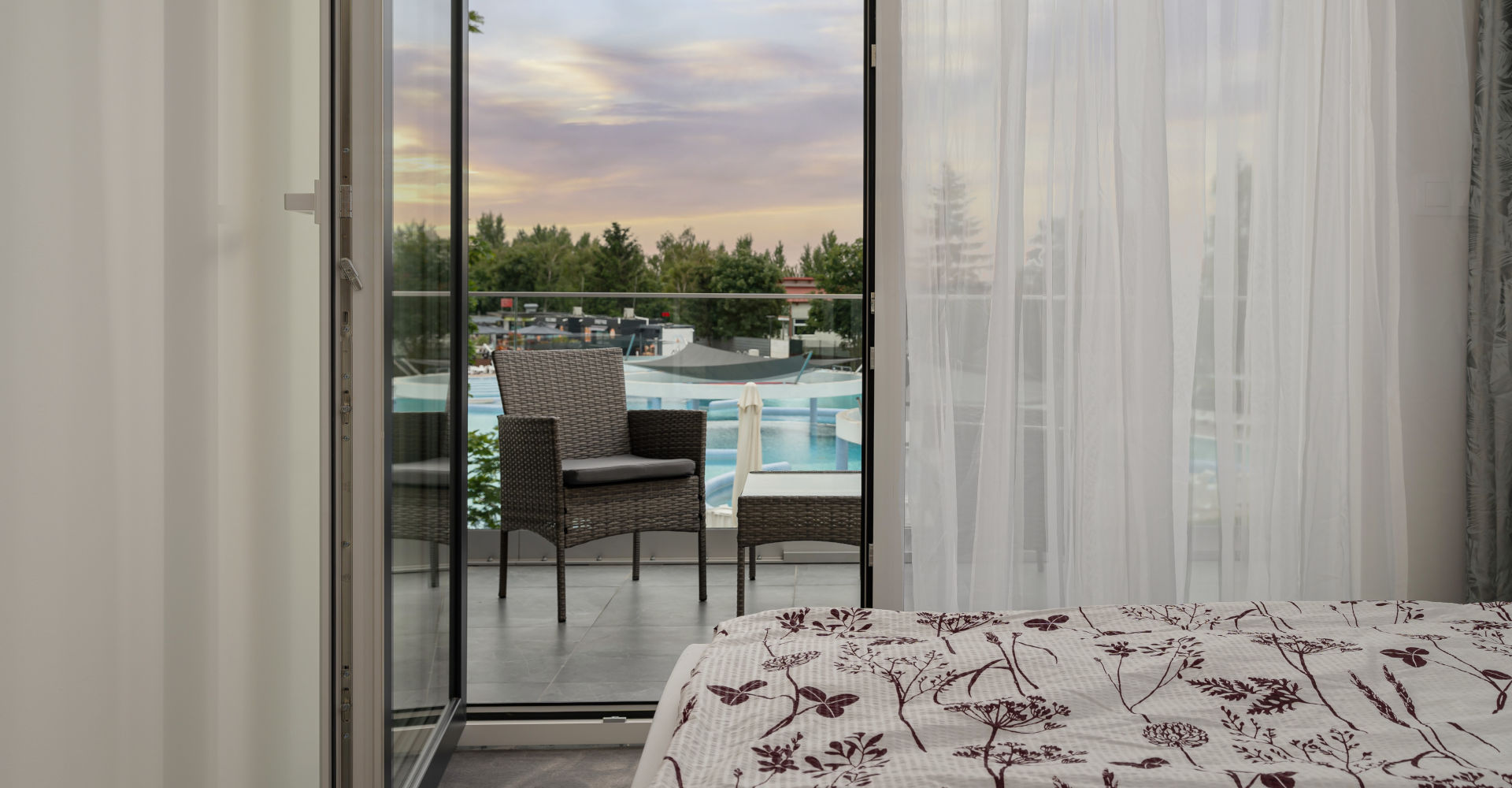 15 exceptionally equipped, air-conditioned cottages, including 10 romantic wooden and 5 modern anthracite cottages. Each cottage features a living area with a kitchenette, a sleeping area, a bathroom with a shower and toilet, and a terrace with garden seating. Chatka Obláčik – both wooden and anthracite – are located in the cottage area of the thermal park.