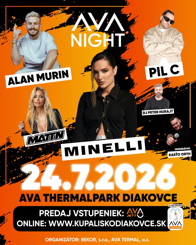 On 24. – On July 25, 2026, the camping area of AVA Thermalpark in Diakovce will once again turn into one of the hottest summer party hubs. 🔥🎶 🎤 Lineup for July 24th 7. 2026